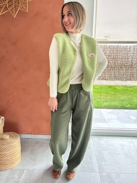Le mannequin porte la taille S/M pour son 38 habituel et mesure 1m58
