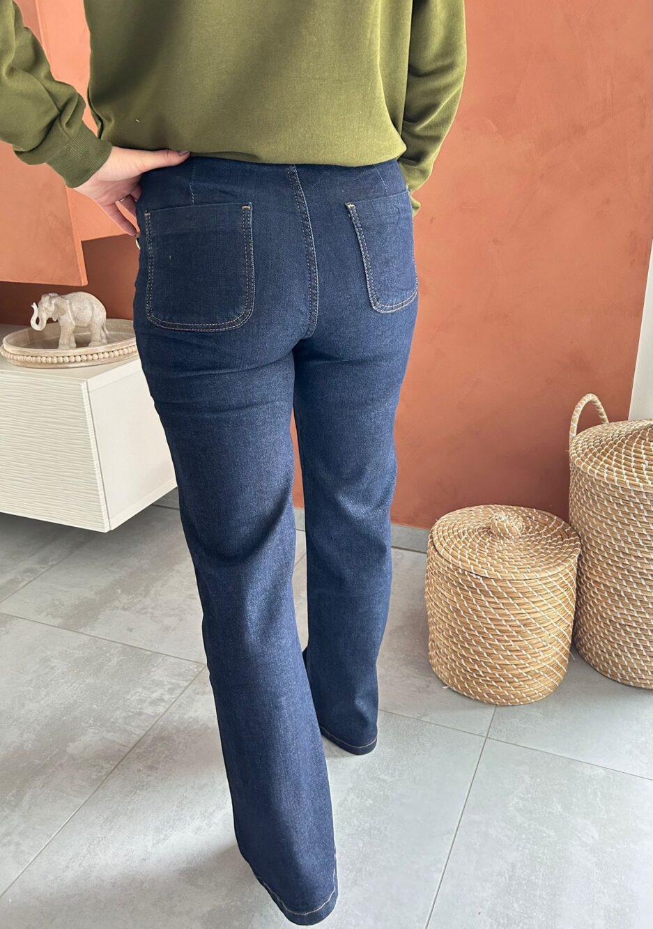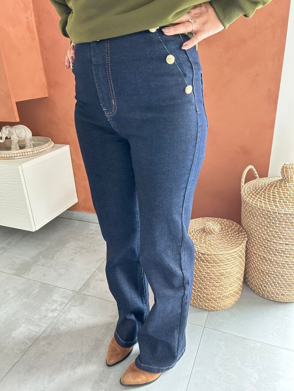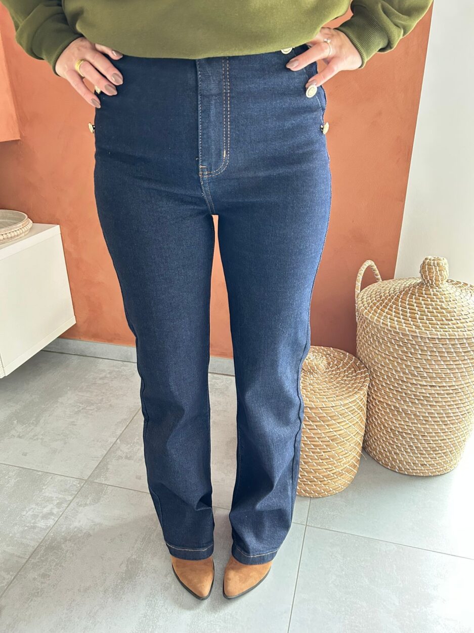 Jeans « Folyrose » couleur brut, boutons sur les cotés style wide leg. Matière extensible, très agréable à porter.