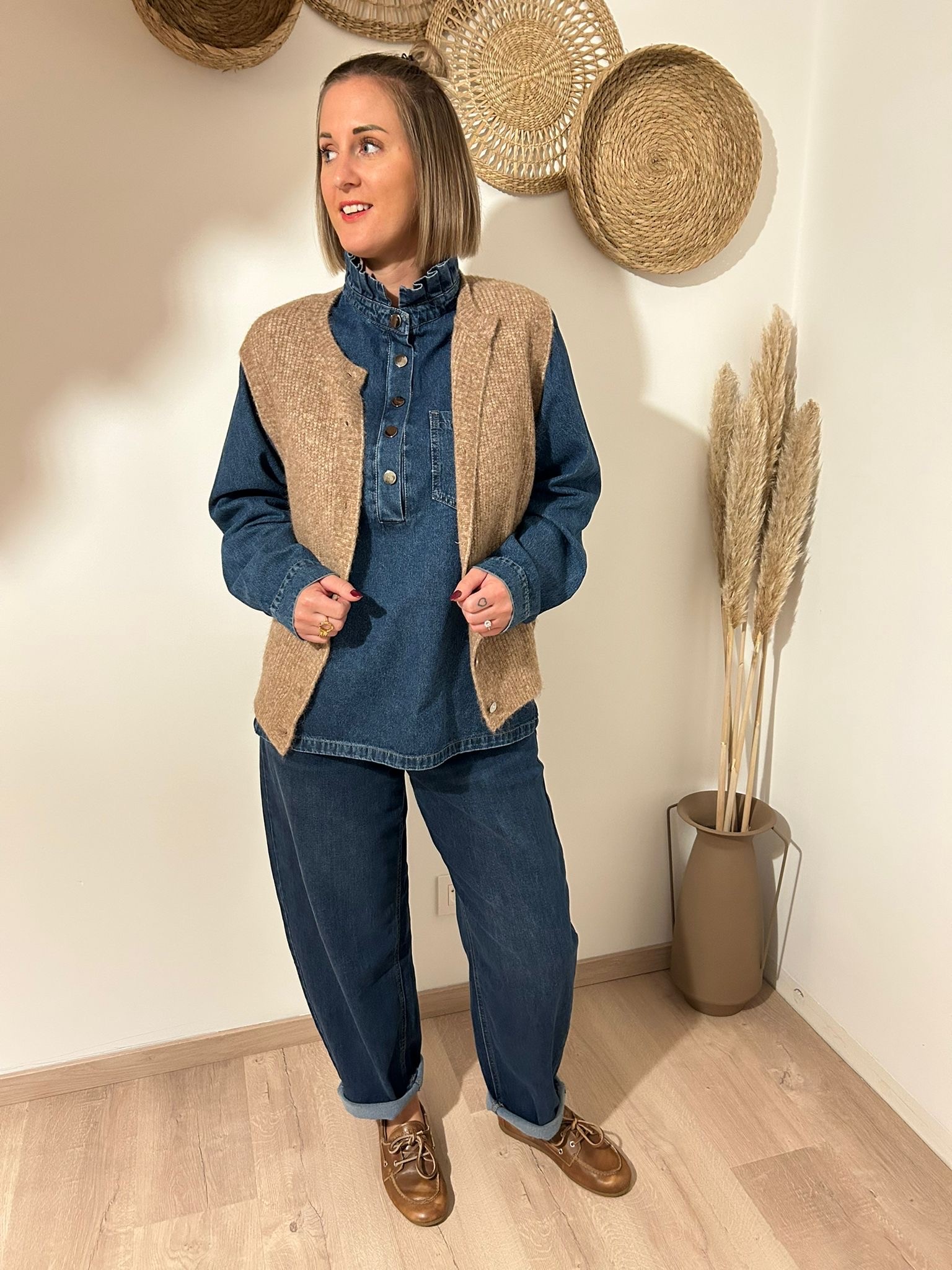Le mannequin porte la taille 38 pour son 38 habituel et mesure 1m68