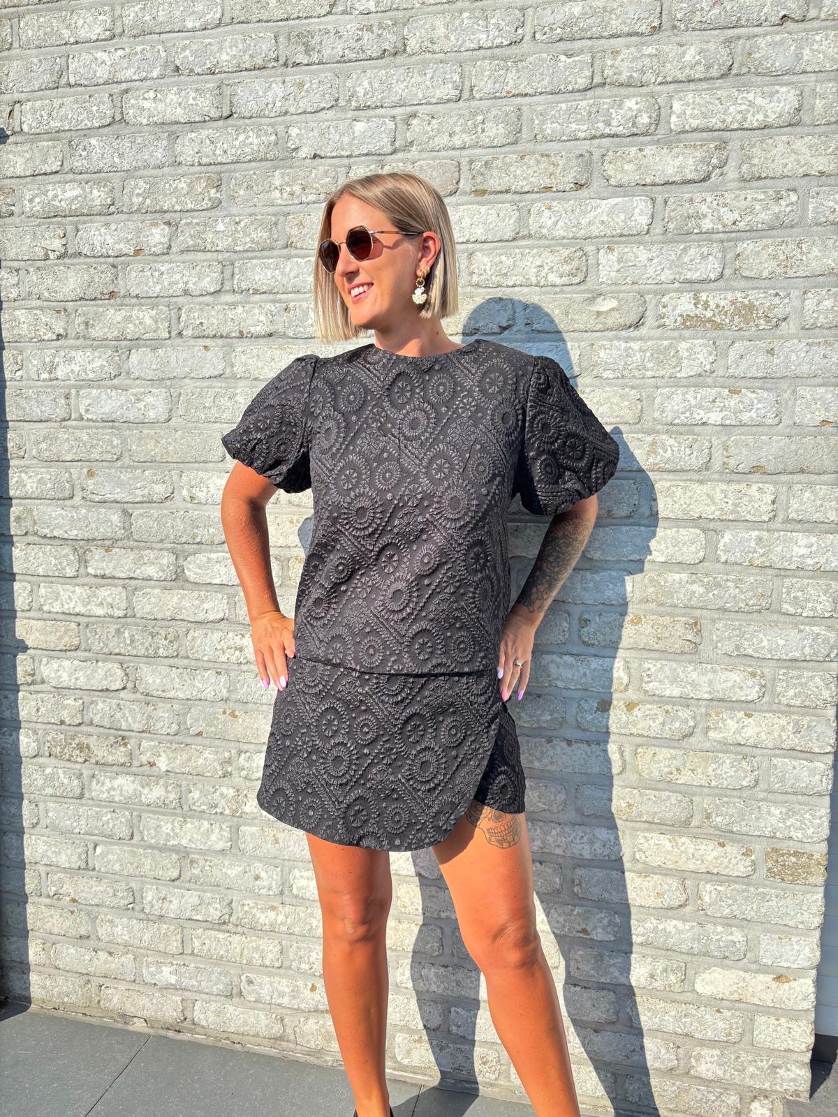 Jupe short noire embossée