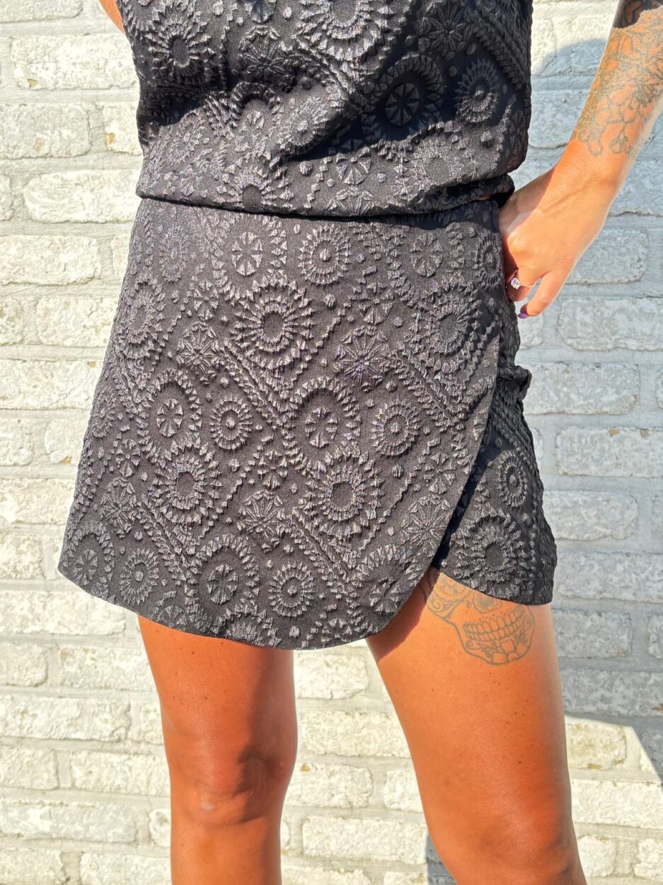 Jupe short noire embossée