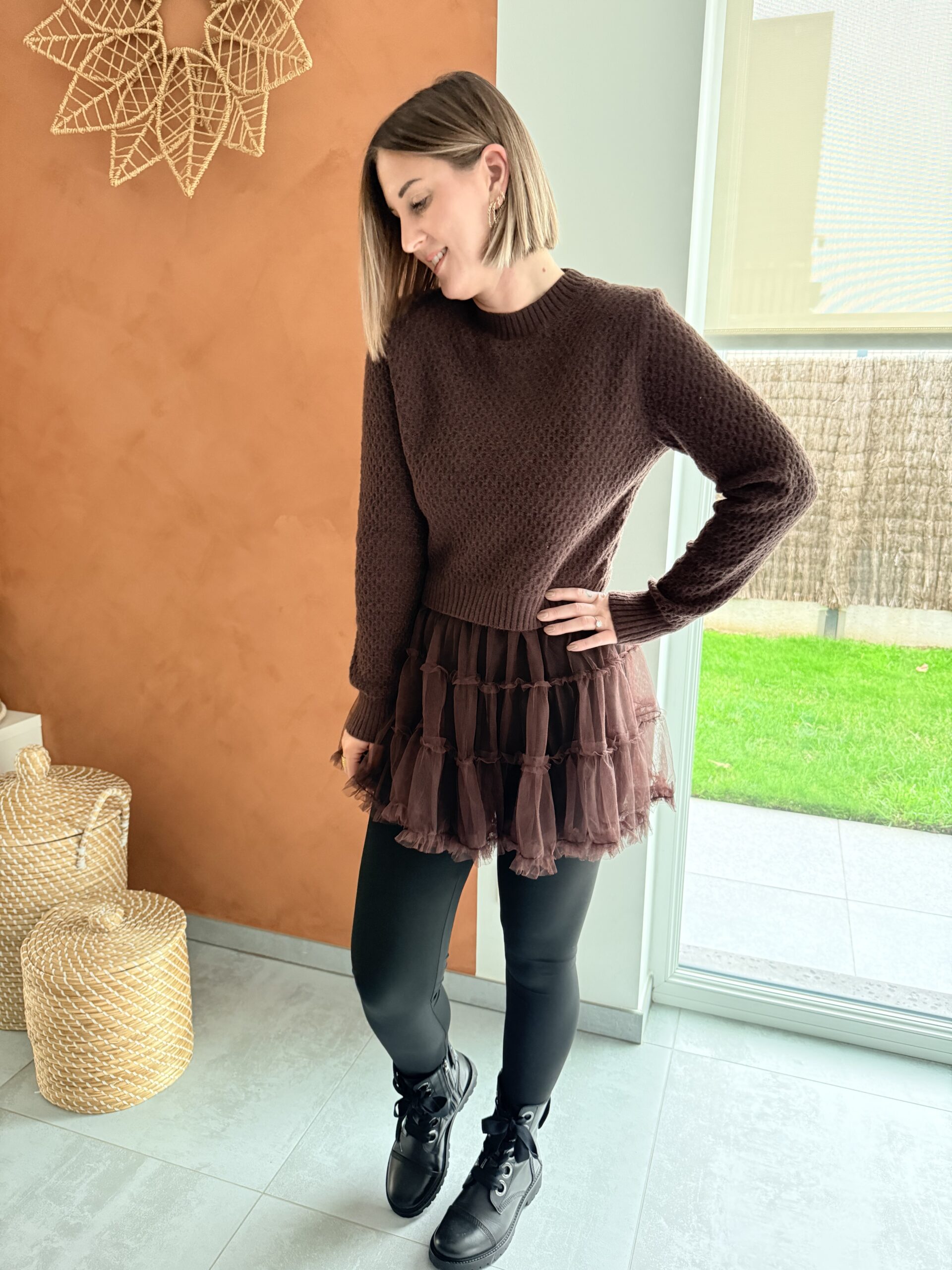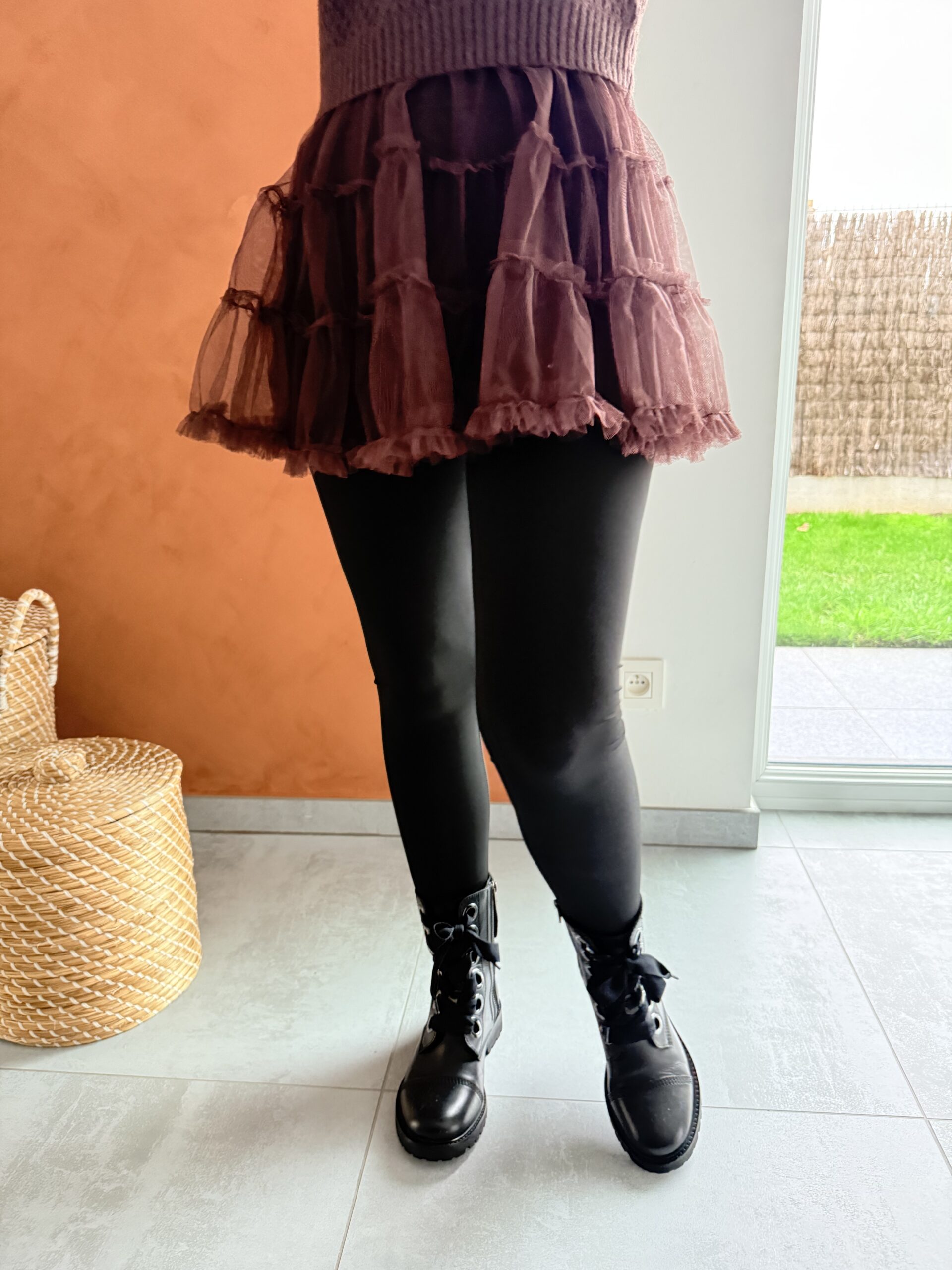 Le mannequin porte la taille M/L pour son 38 habituel et mesure 1m68
