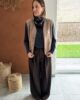 Pantalon droit large marron avec ceinture au niveau de la taille