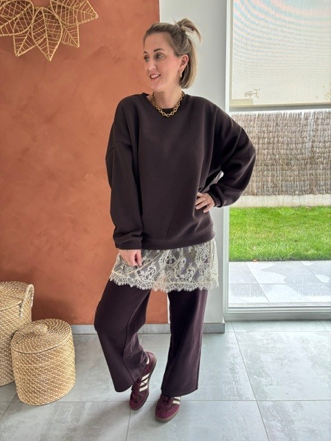 Le mannequin porte la taille S pour son 38 habituel et mesure 1m68