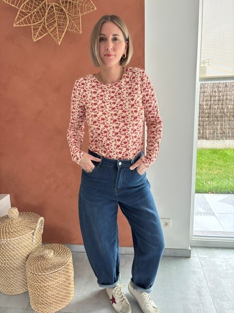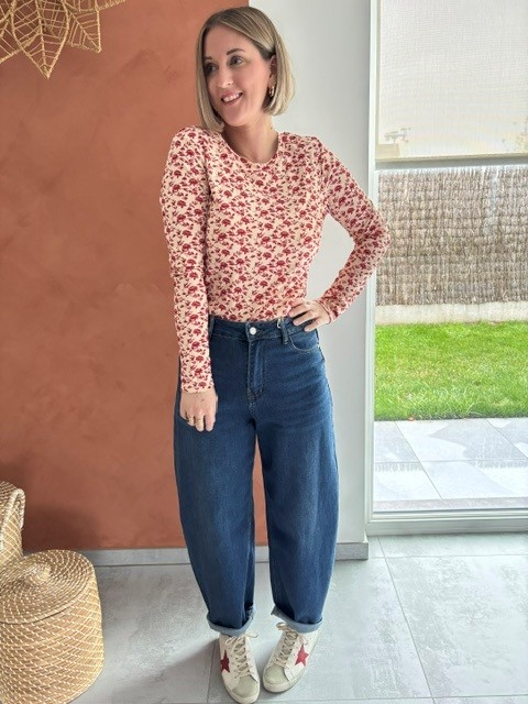 Le mannequin porte la taille M pour son 38 habituel et mesure 1m68