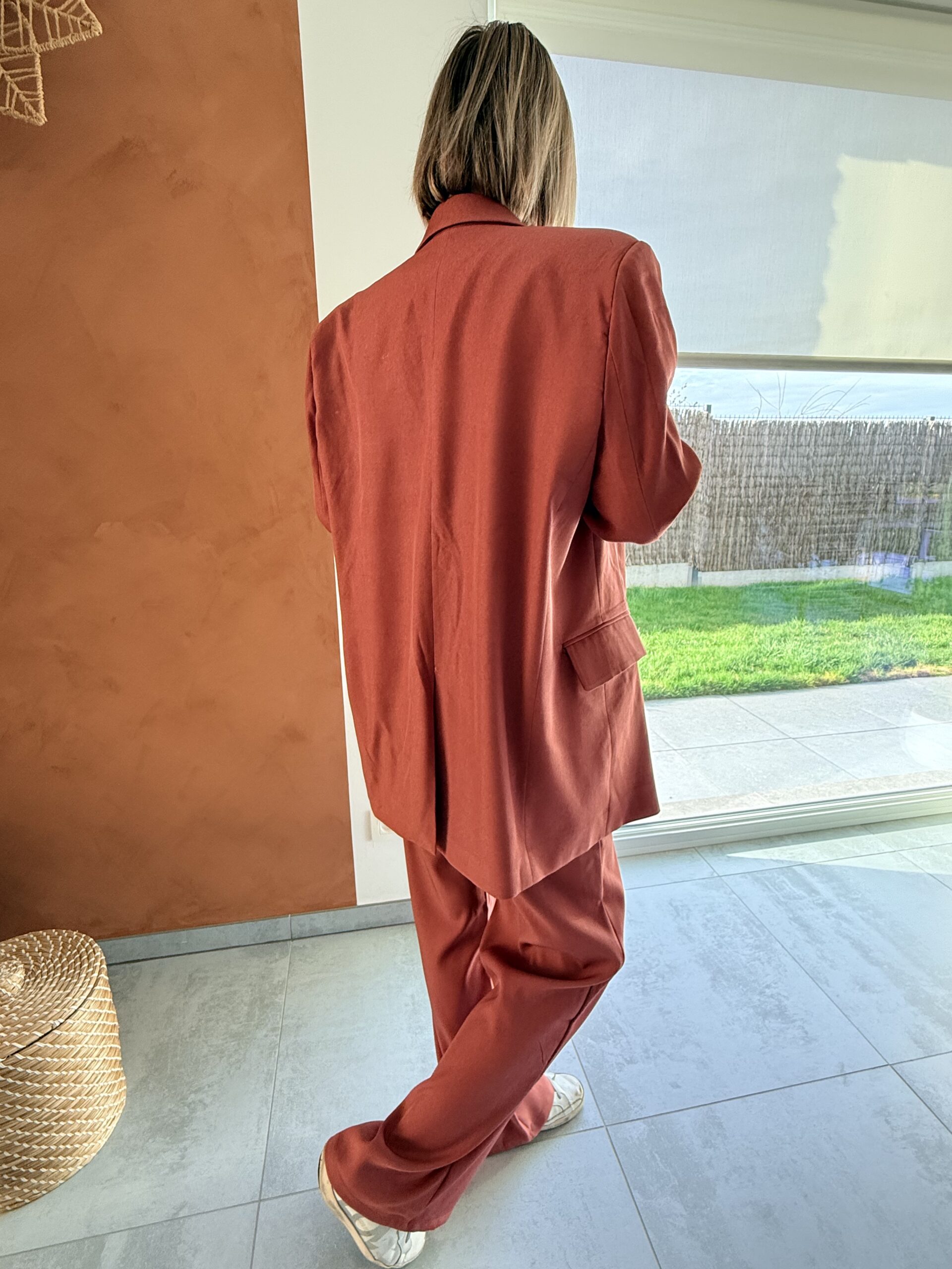 Le mannequin porte la taille S pour son 38 habituel et mesure 1m68